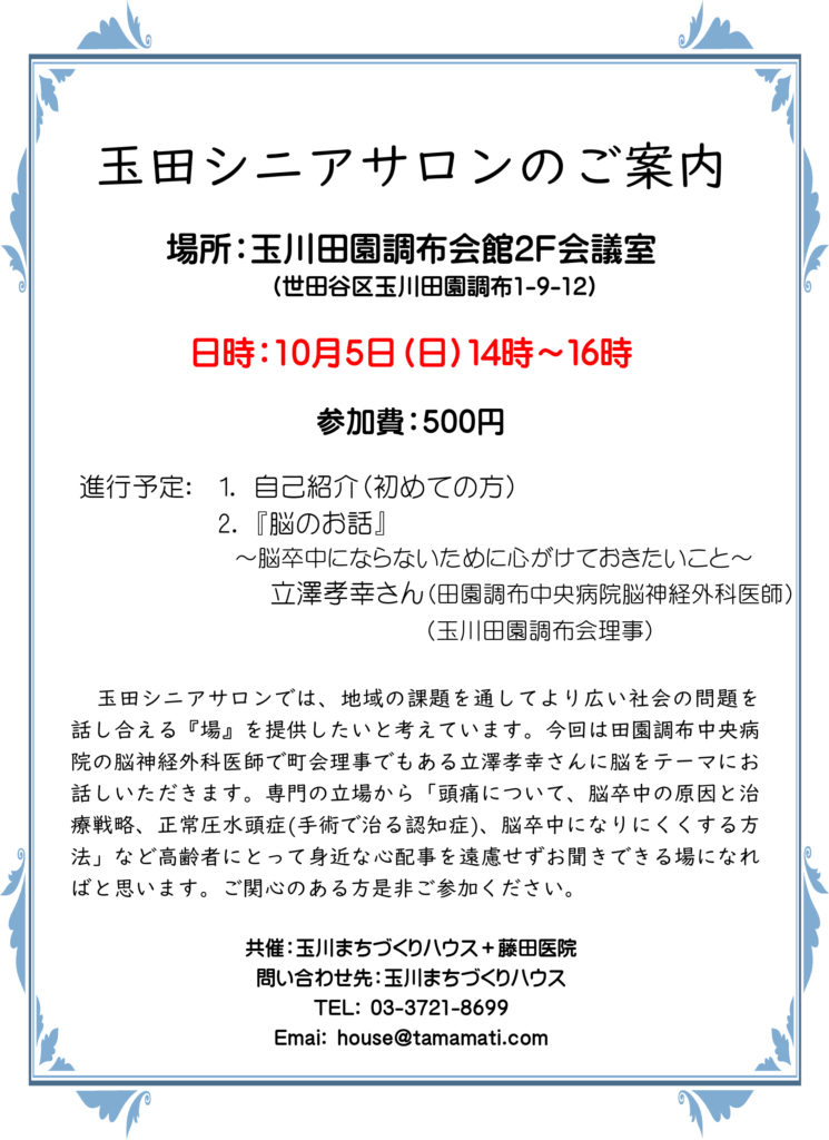 今回は田園調布中央病院の脳神経外科医師で町会理事でもある