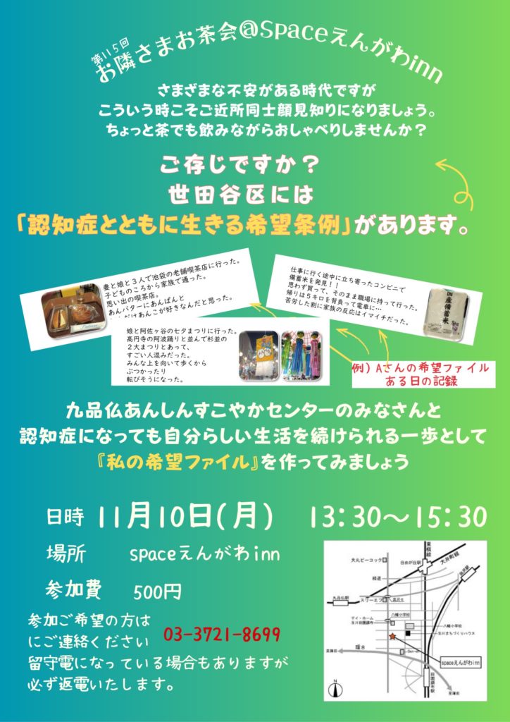 場所:スペースえんがわinn(世田谷区玉川田園調布2-12-6)